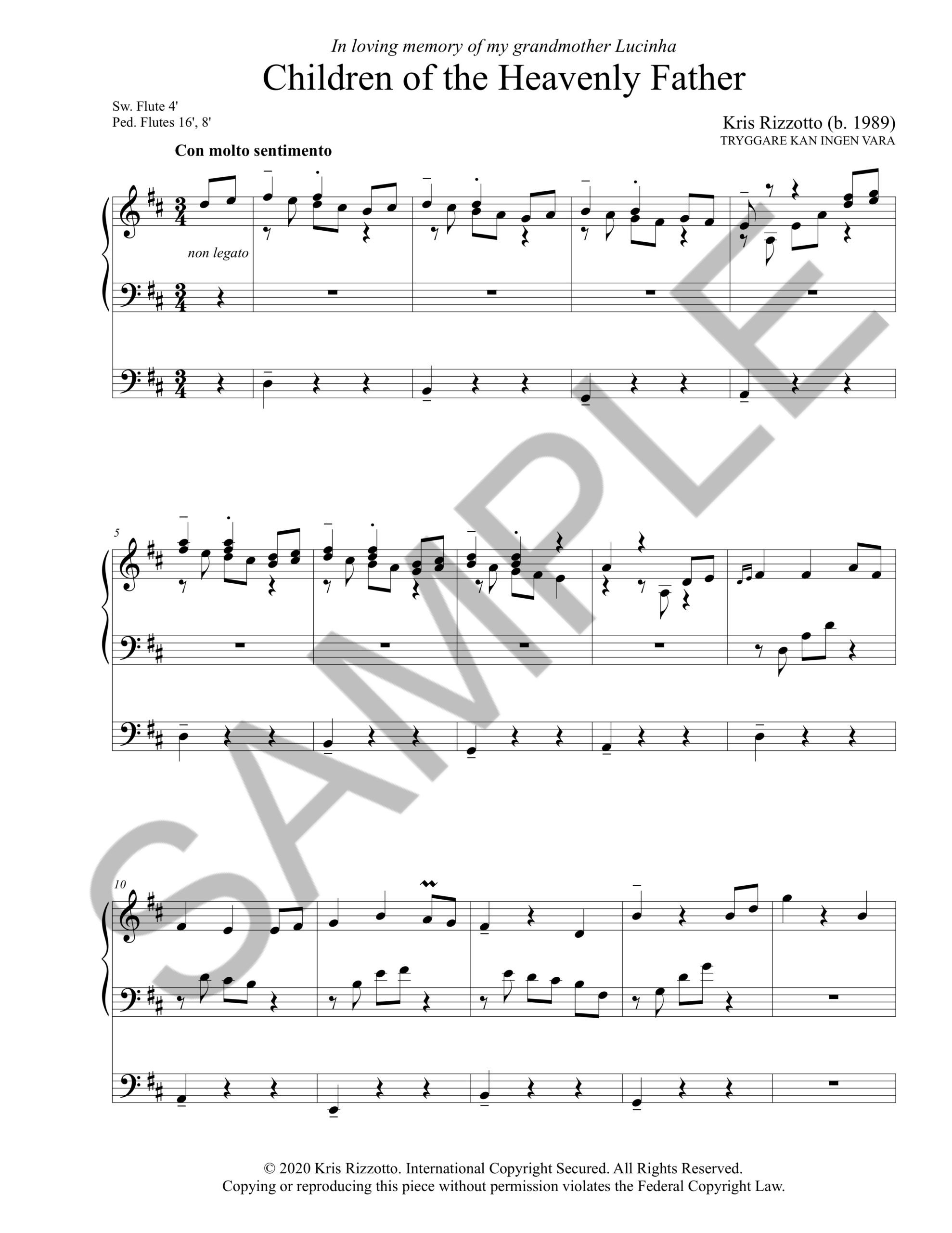 This piece works both as an introduction to the hymn “Children of the Heavenly Father” or as a solo piece. I wrote it, inspired by the hymn text, in loving memory of my grandmother Lucinha, who instilled in me the notion that one can indeed always remain a child at heart.