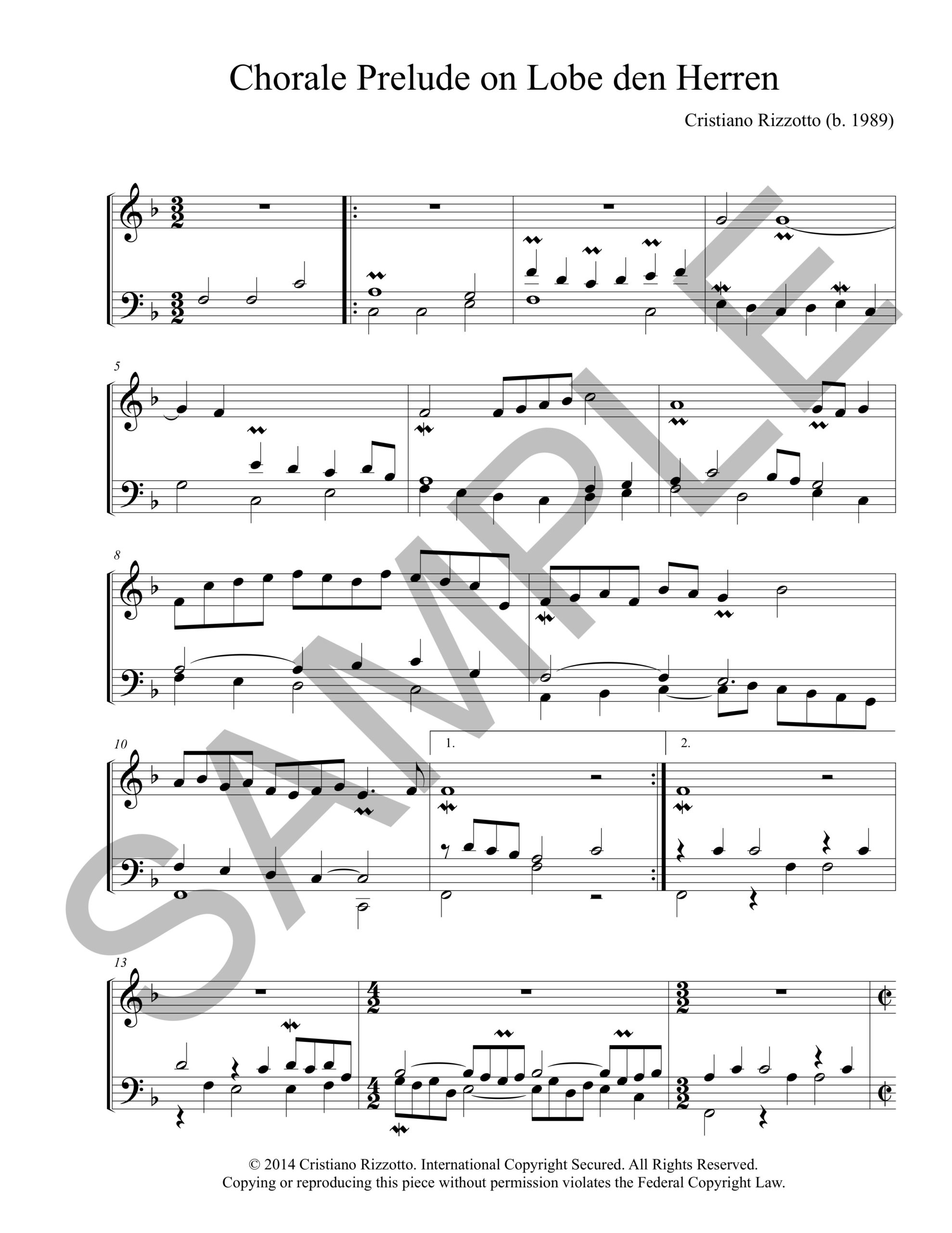 Chorale Prelude in Baroque style using the hymn tune LOBE DEN HERREN, used on hymns such as “Praise to the Lord, the Almighty.”
