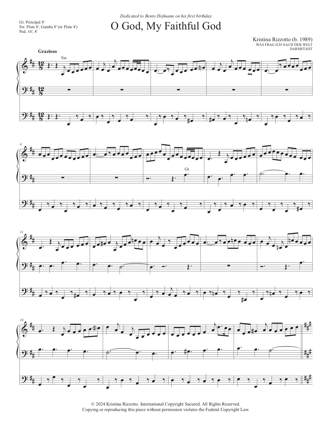 This arrangement of WAS FRAG ICH NACH DER WELT (DARMSTADT) works both as a hymn introduction to “O God, My Faithful God”, “Christ Is the World’s True Light”, or as a solo piece. I dedicated it to Bento Hofmann on his first birthday.